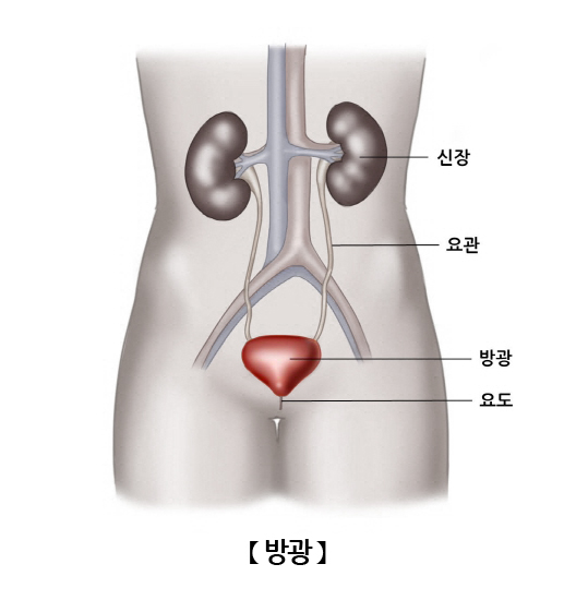 골반내, 치골 뒤쪽에 위치한 소변을 저장하고 배설하는 주머니 모양의 기관입니다. 신장에서 만들어진 소변이 좌,우 요관을 통해 방광으로 들어오면 이는 요도를 통해 바깥으로 배출하게 됩니다.