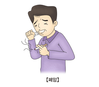 폐암 환자의 90%이상이 흡연 경력이 있는 경향이 있으며, 오랜기간 많은 양의 담배를 피울수록 폐암의 발생 가능성은 높아집니다. 담배는 자신뿐만 아니라 주변 사람에게도 간접흡연으로 피해를 줄 수 있으므로 반드시 금연하도록 합니다. 금연을 할 경우 폐암의 위험도는 천천히 감소하는데, 금연을 시작한 나이가 젊을수록 폐암의 위험도는 비흡연자와 비슷해진다고 합니다. 그러므로 금연의 중요성은 아무리 강조해도 지나침이 없을 것입니다.