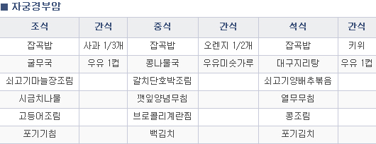 3. 매끼 단백질 반찬(고기, 생선, 해물, 콩, 두부, 계란)을 꼭 갖추어 먹습니다.